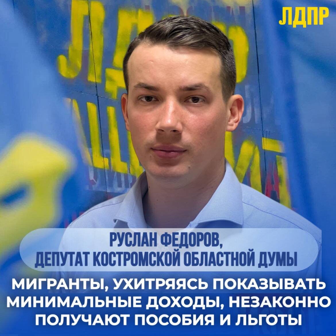 Руслан Фёдоров: Россия должна быть страной для граждан, а не территорией для заработка❗️ Операция «Нелегал-2025» в Костромской области, выявившая вопиющие факты нарушения миграционного законодательства, стала поводом для критики миграционной политики со стороны ЛДПР. Депутат Костромской областной Думы Руслан Федоров, озвучивая позицию партии, заявил о необходимости ужесточения правил въезда и пребывания иностранных граждан. ➡️Результаты операции, а это 141 нарушение и 4 уголовных дела, по мнению депутата, подчеркивают неэффективность действующей системы контроля. Руслан Федоров подчеркнул, что законодательство содержит пробелы, позволяющие недобросовестным мигрантам обходить установленные правила, в том числе в социальной сфере. «Мы видим, как государственные деньги, предназначенные для поддержки костромских семей, утекают в карманы тех, кто не имеет на это никакого права! Мигранты, ухитряясь показывать минимальные доходы, незаконно получают пособия и льготы. Это недопустимо!» – зая