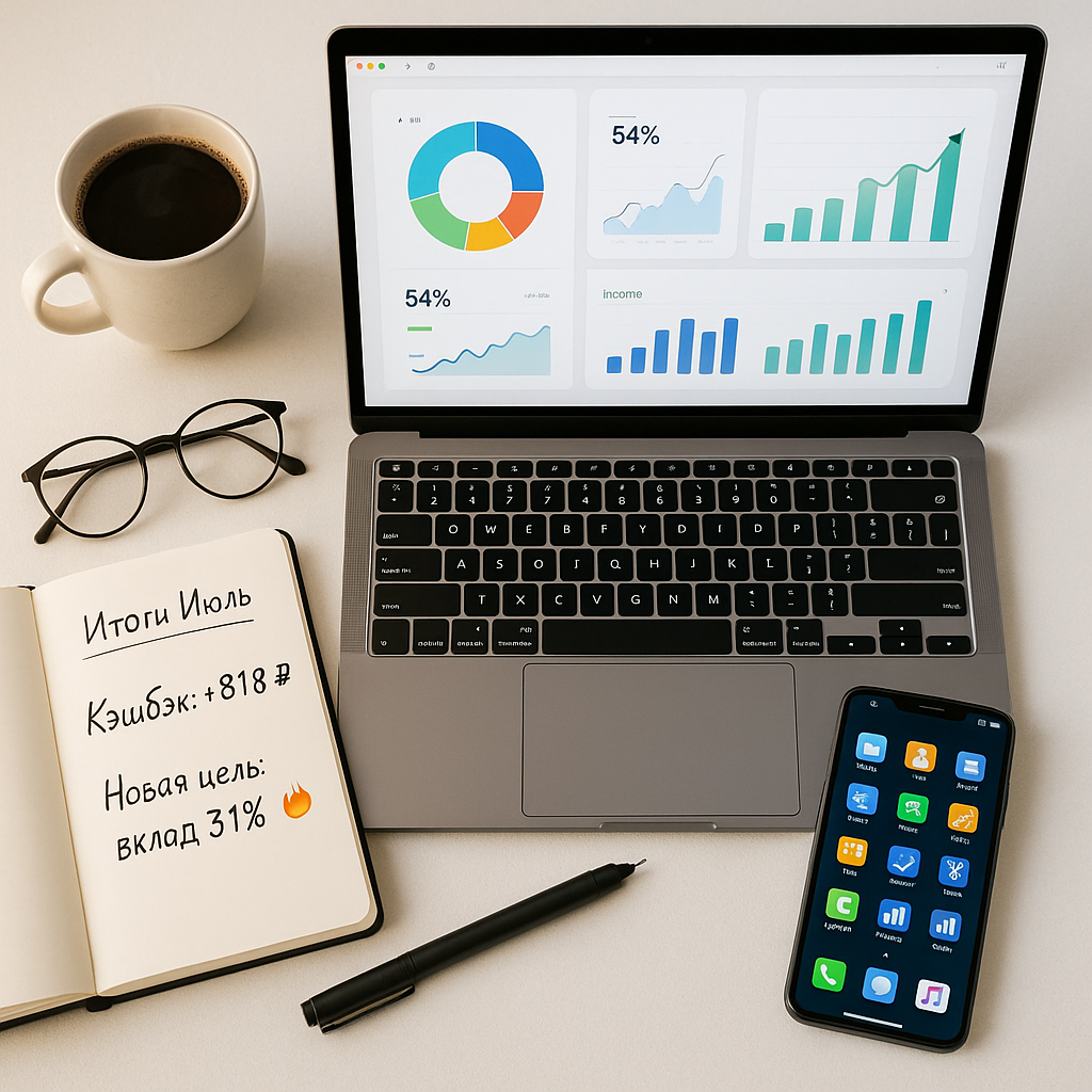 Фин-отчет за июль: Переезд в ПСБ, кэшбэк 818 ₽ и новый фаворит — Ак Барс под 31%! 🚀