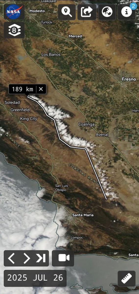 Есть небольшая вероятность землетрясения М4-5 в Калифорнии в течение 7 дней