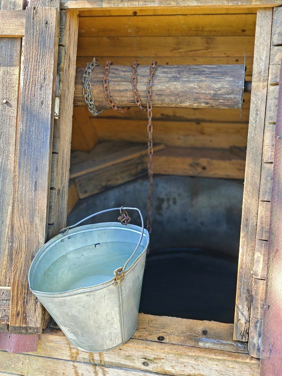 В ведре образовалась дырка и получился мини душ. Очень освежает