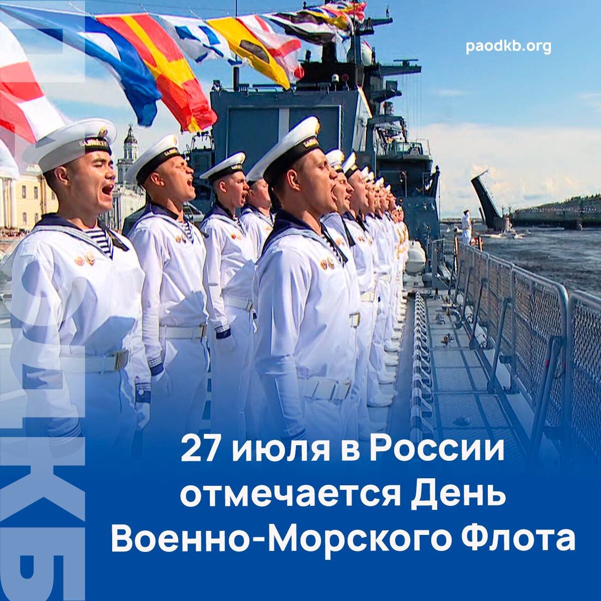 🇷🇺 27 июля в России отмечают День Военно-Морского флота. 🇷🇺 Президент России Владимир Путин поздравил всех причастных с праздником. «Сегодня мы чествуем все поколения отважных, преданных долгу и родине матросов и офицеров. Вспоминаем всех, кто в разные годы и эпохи созидал славу и мощь российского флота, кто в ратных свершениях и триумфах каждодневным упорным трудом и блестящими научными достижениями утвердил Россию как великую морскую державу», - отметил Владимир Путин. Подробно ➡️ paodkb.org Сайт | VK | Fb | X | Instagram | dzen