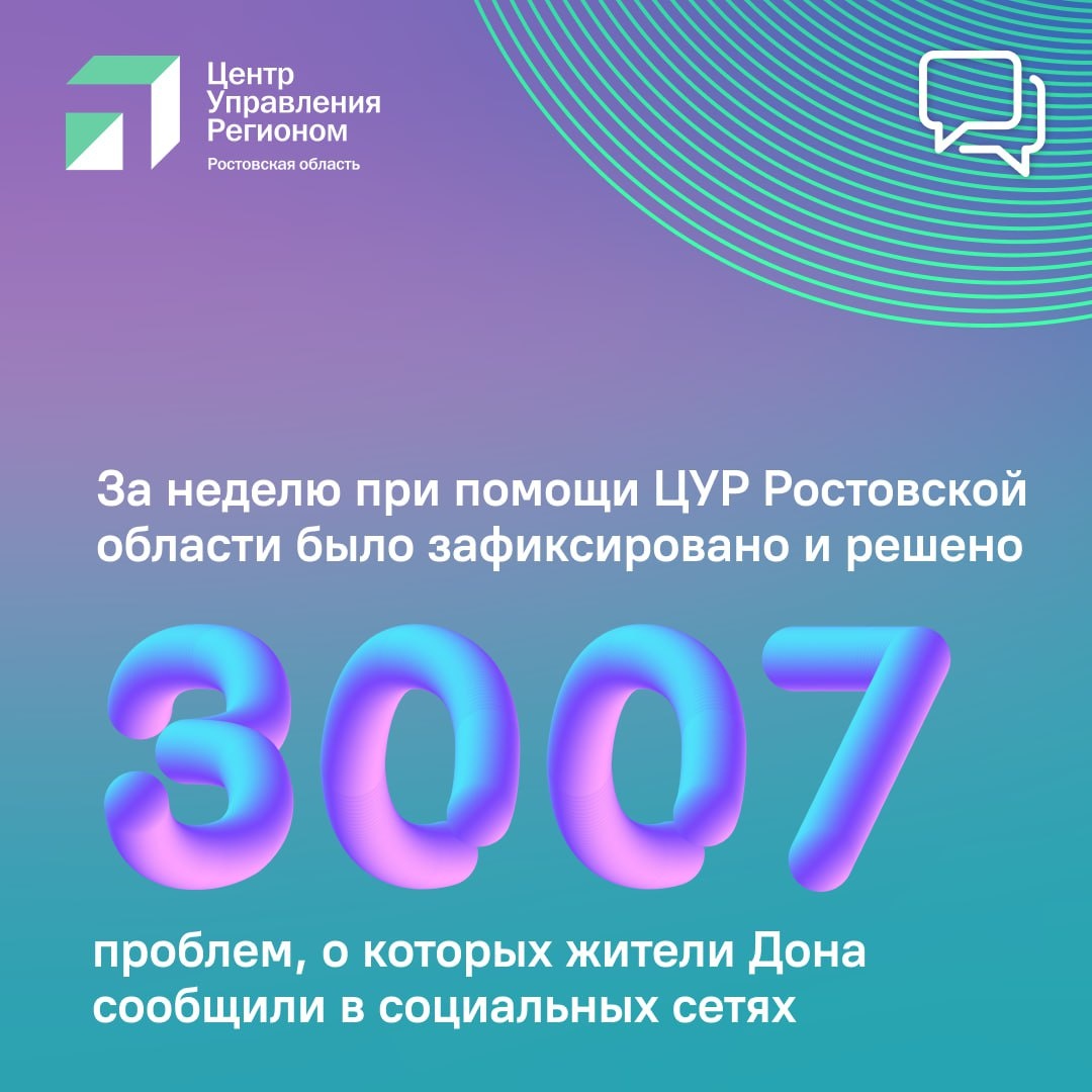 💨За эту неделю при содействии Центра управления регионом Ростовской области было зафиксировано и решено 3007 проблем, о которых жители Дона писали в социальных сетях.