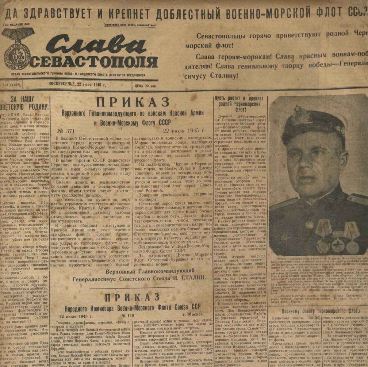 1. Газета «Слава Севастополя» № 137 от 22 июля 1945 г.