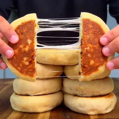 Это не просто пирожки — это завтрак, от которого просыпается душа! ☀️ Представьте: румяные лепёшки, приготовленные без жира на сковороде, с начинкой из золотистого бекона, нежных сваренных скрэмбла яиц и расплавленного сыра.