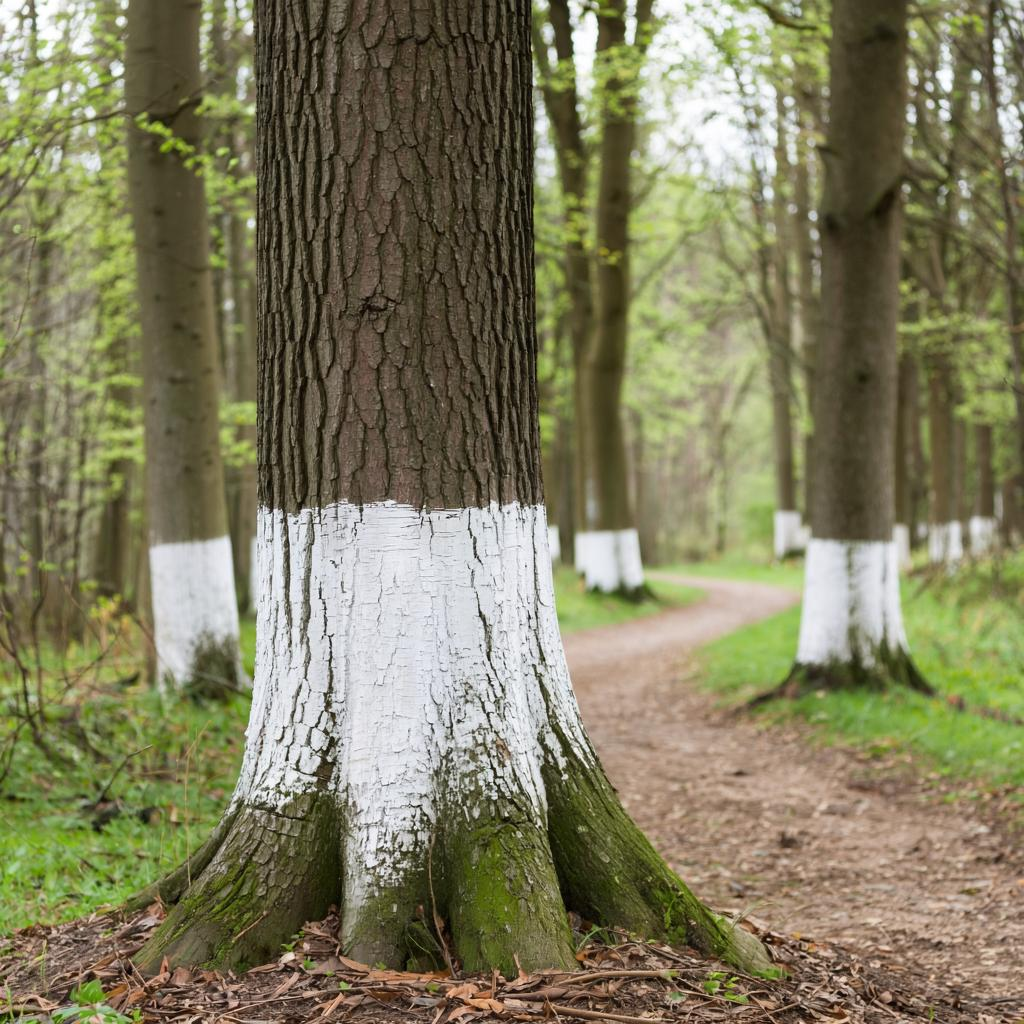 Второй значимый аргумент – защита от вредителей и болезней. Гашеная известь (Ca(OH)2), которая является основным компонентом традиционного раствора для побелки, обладает выраженными дезинфицирующими и антисептическими свойствами. Считается, что при нанесении на кору известковый раствор уничтожает или подавляет развитие спор патогенных грибов, бактерий, лишайников, мхов. Кроме того, он может уничтожать зимующих в микротрещинах, под отслоившейся корой, в щелях насекомых-вредителей, их личинок и яйцекладки. Речь идет о таких вредителях, как тли, клещи, щитовки, ложнощитовки, короеды, златогузки, гусеницы плодожорок, которые ищут укрытие на стволах и скелетных ветвях на зиму. Побелка создает на поверхности коры щелочную среду, которая является неблагоприятной для развития многих патогенов и вредителей. Также сторонники метода упоминают защиту от грызунов (зайцев, мышей). Горький вкус извести теоретически может отпугивать животных, которые зимой могут обгладывать кору молодых деревьев, особенно в голодные периоды или при высоком снежном покрове. Побелка делает ствол более заметным в темноте, что теоретически может снизить риск механических повреждений от техники или транспорта в условиях плохой видимости.
