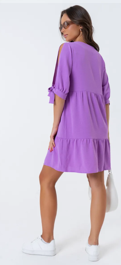 Летнее повседневное платье от бренда Miss Cora выполнено в модном сиреневом цвете и отлично подойдёт для тёплого сезона «Весна–Лето 2025». Стиль свободного кроя с завязками на рукавах делает образ женственным и расслабленным — идеально для прогулок, путешествий и встреч с друзьями.