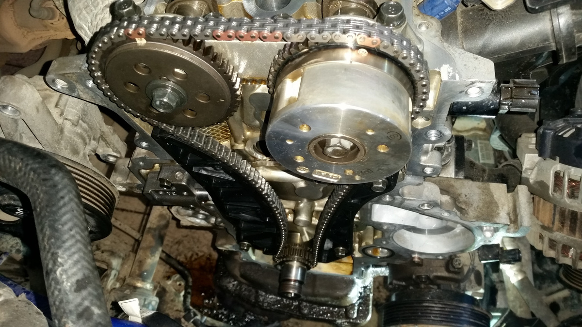 - Установка новой цепи. Установите цепь на шестерни коленчатого и распредвала, следя за правильным совмещением марок.