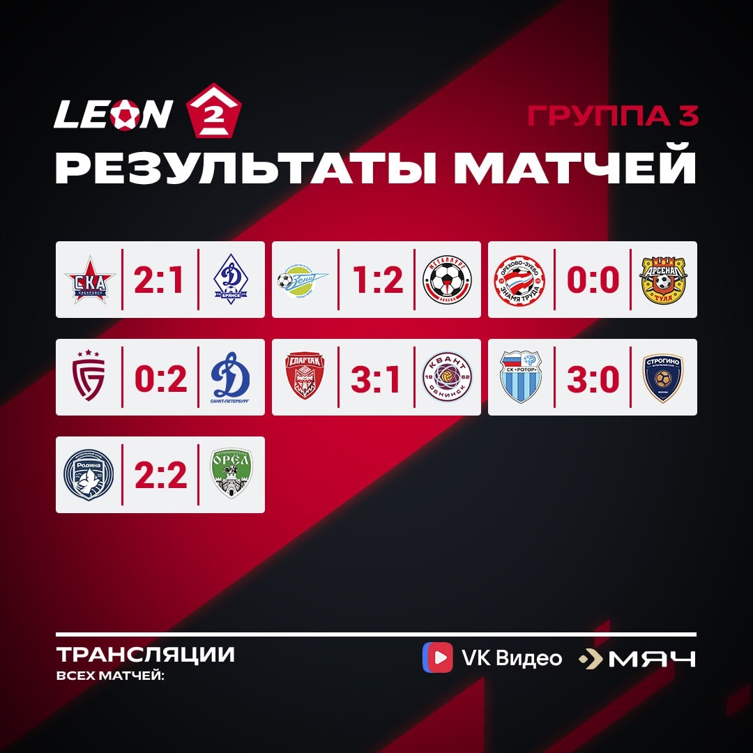 Результаты матчей и таблица 🟥LEON-Второй Лиги Б в группе 3️⃣ после 16 тура