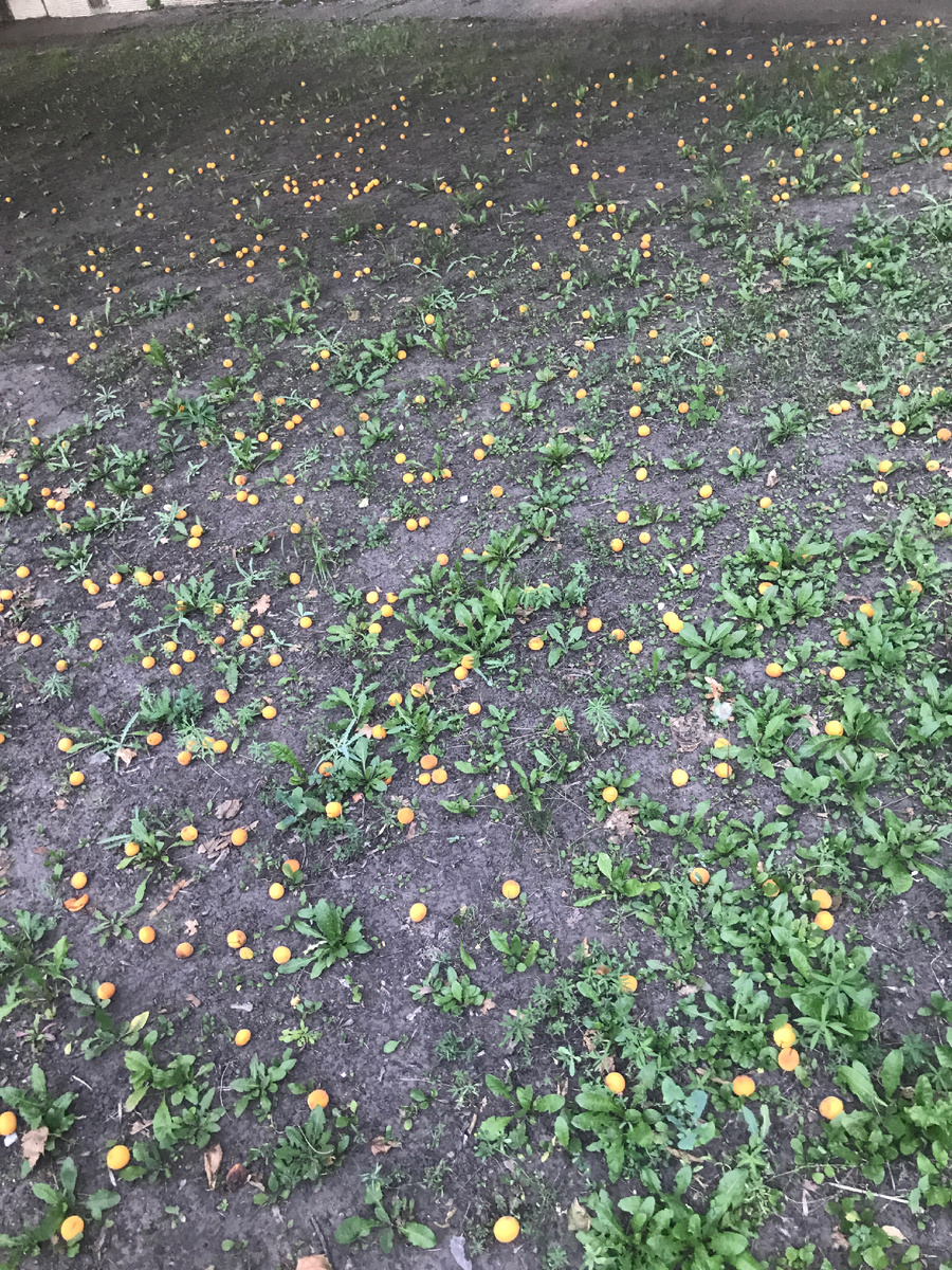 Чем шире позволяешь открывать себе глаза (в прямом и переносном смысле), тем чаще встречаешь в жизни что-то особенное. То, о чем, возможно, раньше и мысли не допускала, считая это чем-то невероятным и нереальным. 😉 Жаль, что не так давно пришло ко мне это понимание устройства мира, ведь такая модель поведения работает на сто, если не на триста, процентов. Вот простой, но очень конкретный пример. Яблоня и вишня в городе - явление привычное. Эти деревья можно встретить около многих подъездов многоквартирных домов. Меня поразило другое дерево в городе. Можно даже сказать, стало неожиданным, ошеломляющим открытием. 😍 Дело было так. Сходив по делам на соседнюю улицу, на обратном пути я внимательно смотрела по сторонам, ведя разговор «о тем, о сём» со своей юной попутчицей - дочерью. 😊 Уже издалека моё внимание привлекла странная россыпь оранжевых шариков под деревом около балкона одного из домов. Первая мысль: шаловливые дети избавились от ненужных игрушек посредством выброса их с балко