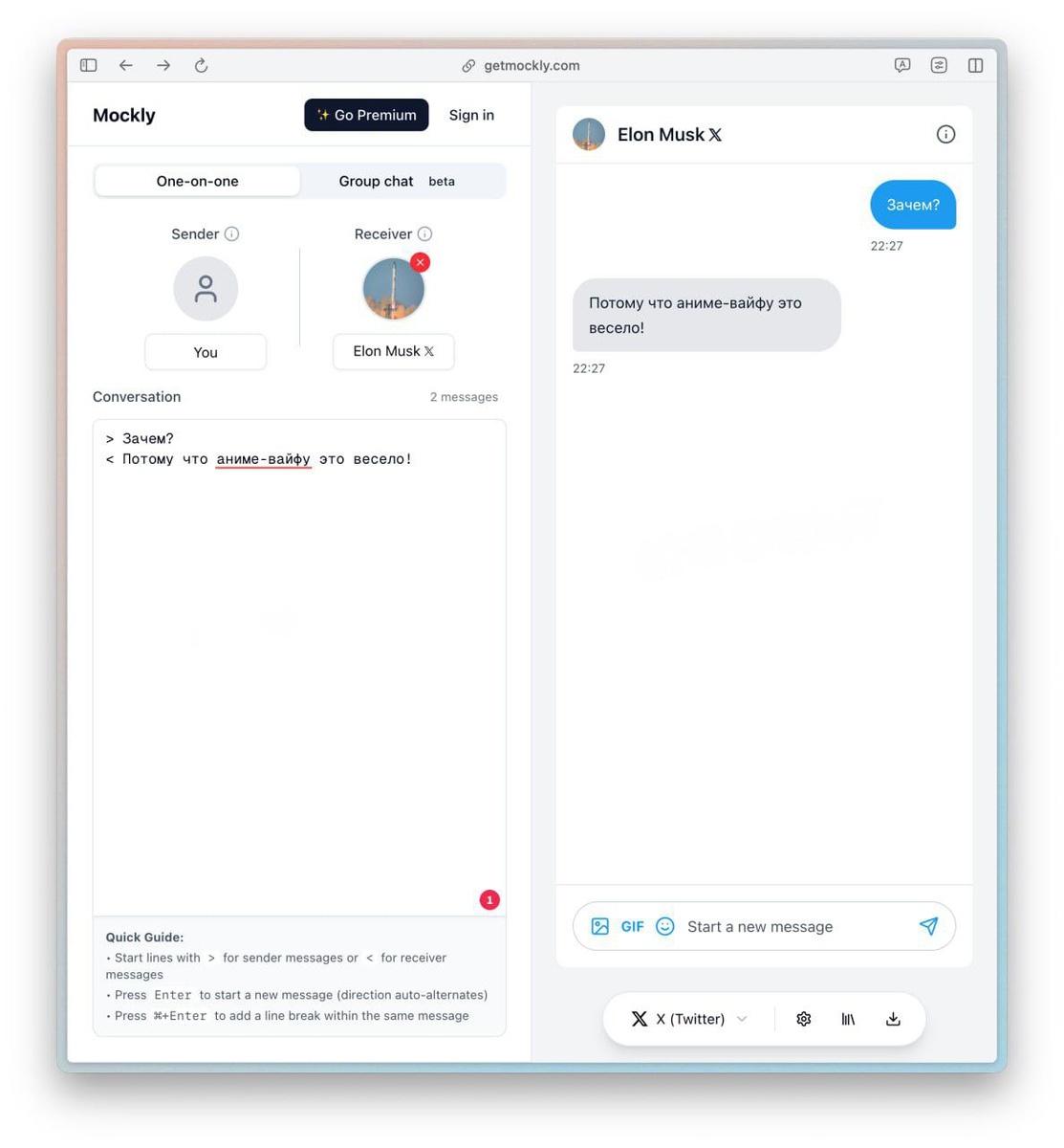 💥 Ты когда-нибудь хотел сымитировать переписку, где твой кот предлагает тебе инвестиционный совет? Или где Elon Musk пишет: «Брат, возвращай долг в 300 гривен»? 😼💸