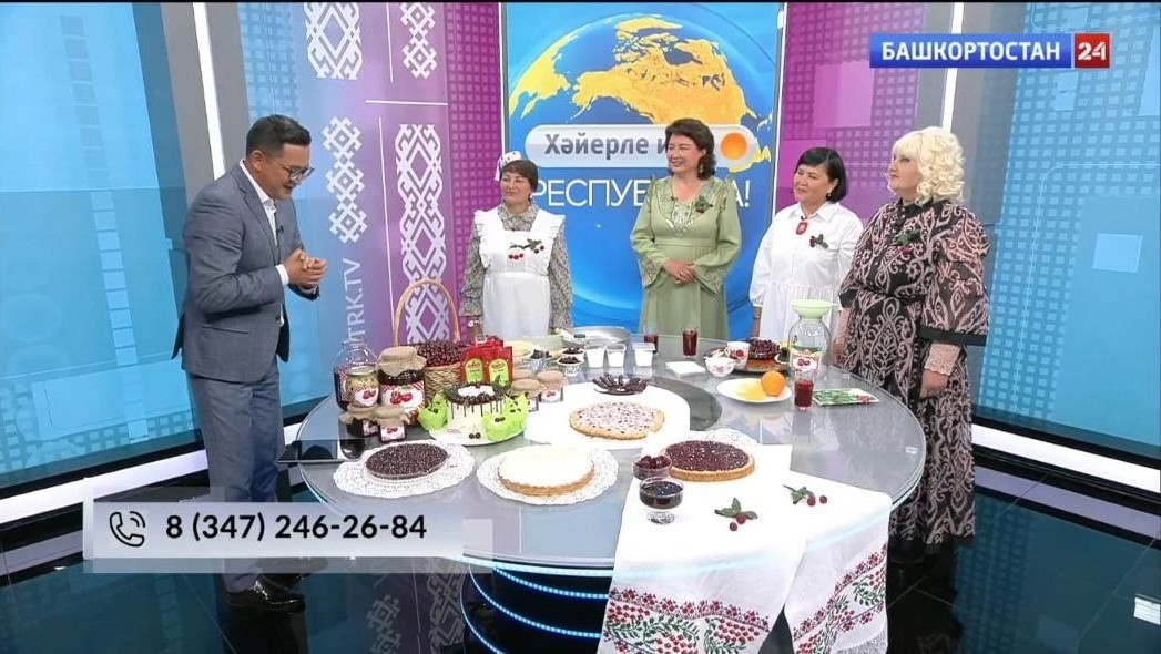 В ходе беседы с ведущим Галимьяном Ибатуллиным обсуждались исторические аспекты происхождения буздякской вишни, приметы, связанные с ней, а также ее полезные свойства. В рамках программы Гульназ Марксовна провела мастер-класс по приготовлению компота, а Фануза Фидановна продемонстрировала процесс изготовления вишневого пирога. На столе были представлены разнообразные блюда из вишни: компот, варенье с косточками и без косточек, пастила, масло с вишней, заливной пирог, желе, пирог с вишней под сметанной заливкой, торт, капкейки, изготовленные мастерами А