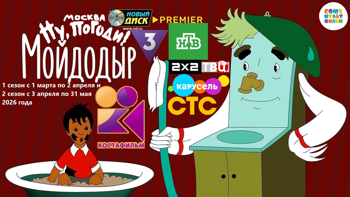 Союзмультфильм Телеканал Новый диск, ТВ3, НТВ, 2x2, ТВ Центр, Карусель и СТС Ну, погоди, Москва, Мойдодыр!