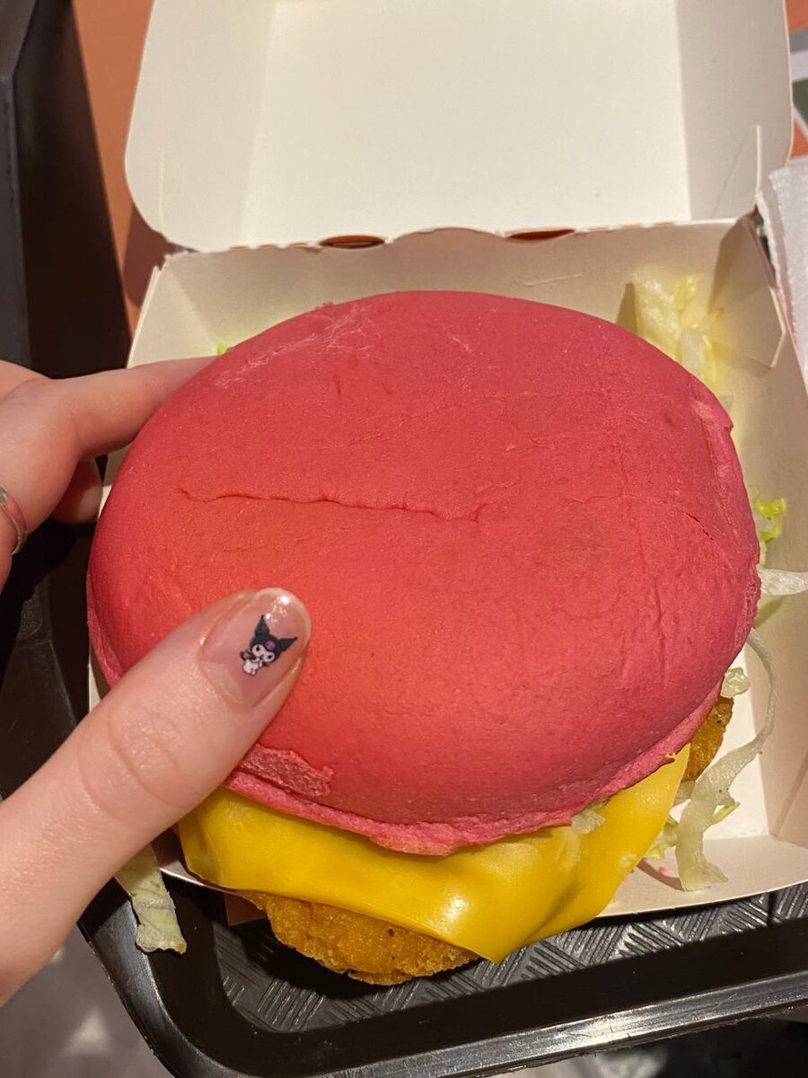 В бургере внезапно зашёл розовый соус: сырный с чёрным перцем, благодаря которому появляется пикантность во вкусе. Получился розовый чикенбургер со вкусом дымка! Второй раз бы не взяли, но на фото выглядит классно. Грустим, что без игрушек…
