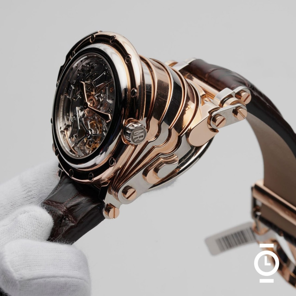 #статья_WatchesDigest MANUFACTURE ROYALE. ВОЛЬТЕР, СТИМПАНК И БЕЗУМСТВА В первый раз эту компанию основал вольнодумец Вольтер в XVIII веке, во второй — экс-сотрудник не менее вольнодумного Harry Winston в XXI. Новая-старая компания выпустила стимпанковые турбийоны и репетиры, часы с парящим балансом (привет MB&F) и сдвоенными турбийонами (причем один вдесятеро быстрее другого). Ее директор говорит, что в часы бренда либо сразу влюбятся, либо возненавидят, а среднего не дано. Встречайте в этой статье: Manufacture Royale. На фото: Manufacture Royale Opera — самое первое, самое стимпанковое и невероятное творение мануфактуры. Внутри у него репетир и турбийон, а у безумного корпуса есть вполне разумное объяснение. 🔶 Переходи в чат, выскажи свое мнение! 🔶 Модератор 🔶 Watches Digest Market