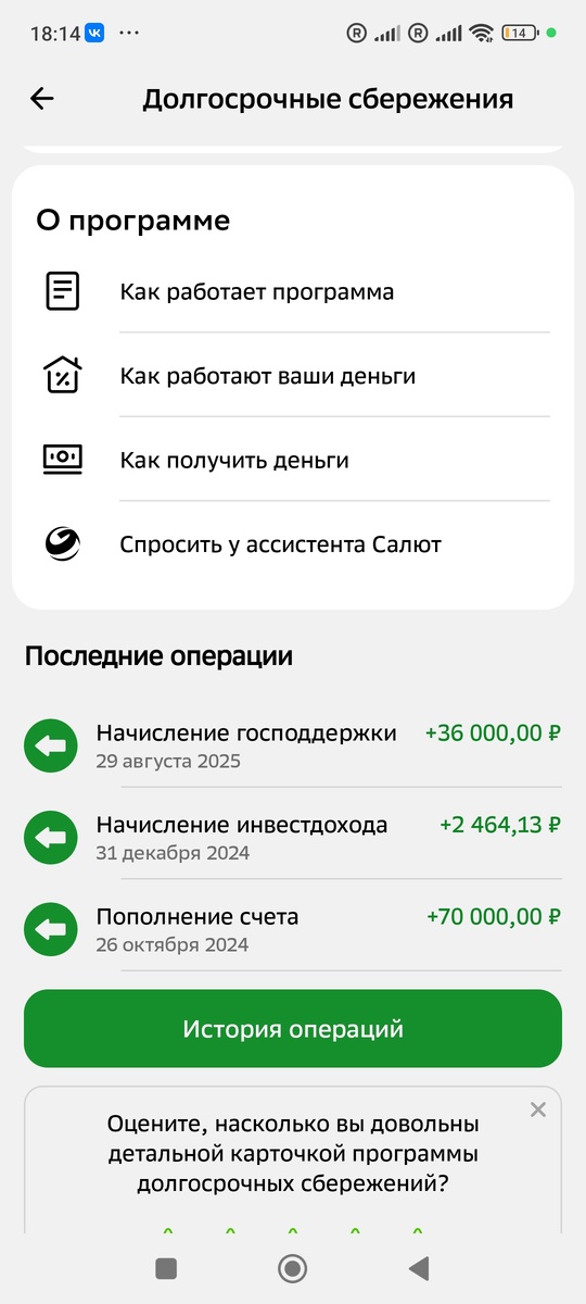 Максимально в год можно получить 36 000 руб. софинансирования. Я специально внесла в 2024-м 72 000 руб., чтоб получить максимальное софинансирование из расчета 1/2. И, если честно, я приуныла, когда поняла, что, скорее всего, я получу всего 18 000 руб. господдержки.