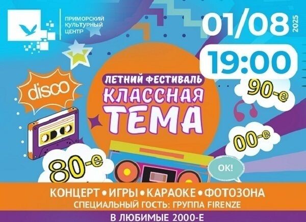 В парке «Озеро Долгое» на пересечение проспекта Королёва и Ольховой улицы в Петербурге 1 августа пройдёт молодёжный фестиваль «Классная тема». Он будет посвящён нулевым годам 21-го столетия. «Доставайте с антресолей самые модные образы нулевых. Ведь мы планируем вернуть вас в прошлое. От самых популярных хобби подростков до уличных развлечений детей той эпохи – планы огромные», – говорится в сообщении, размещённом на странице администрации Приморского района Петербурга в социальной сети «ВКонтакте». Посетители праздника станут частью мастер-классов от библиотек Приморского района по плетению фенечек или же мастер-класса в технике коллажа, на котором каждый сделает свой личный вкладыш, будто из жвачки Love is… На самом озере Долгом пройдёт заплыв на сапах, организованный Центром спорта Приморского района. Среди прочего – гигантский баннер-раскраска с достопримечательностями Приморского района, зона дворовых игр – классики, резиночка, фишки и йо-йо. А в караоке-палатке гостей этого масшт