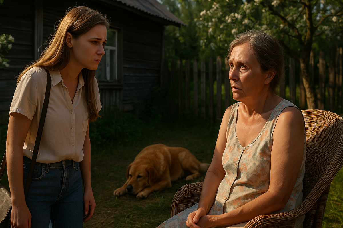 Во дворе в плетёном кресле сидела женщина в лёгком сарафане. Рядом дремала большая рыжая собака. Обычная летняя картина покоя — если бы не один момент. Женщина сидела очень прямо и смотрела в одну точку. Пустым, неподвижным взглядом.