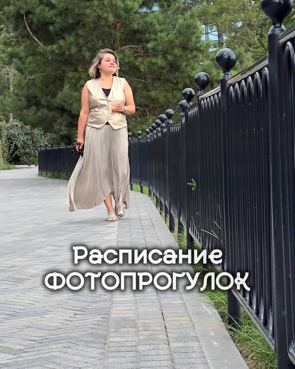 Расписание ФОТОПРОГУЛОК в августе: 6 августа - среда 13:00-15:30 13 августа - среда 13:00-15:30 22 августа - пятница 13:00-15:30 На ФОТОПРОГУЛКЕ я вас учу делать интересные кадры и я сама фотографирую вас на камеру. Вы уходите с вдохновением и новым видением окружающего мира и с красивыми фотографиями. Стоимость участия 777 р. Цена с подругой 500 р для каждой. Стоимость повторного участия 500 р. Для того, чтобы я вас не потеряла и отправила вам место встречи, напишите в комментариях «иду 6.08»