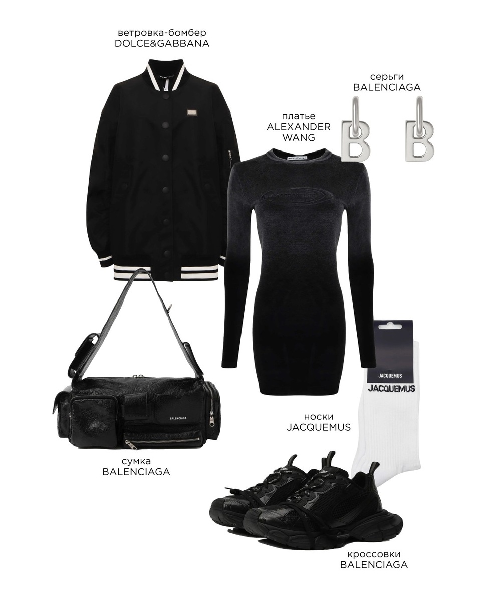 Есть вещи, которые становятся основой личного стиля, особенно если уметь видеть в них больше, чем заявлено на бирке. В нашем случае — это короткое велюровое платье с эффектом деграде и рельефной фактурой. На него легко опереться и уйти в любую сторону — от утреннего кофе в городе до вечернего сбора на закрытую вечеринку. При этом ни один образ не выглядит как повтор. 1. Street smart Платье + тренд на постспортивные образы — союз, в котором выигрывают оба. Добавьте объемную куртку в стиле varsity или кроя oversize, носки с контрастной окантовкой и массивные кроссовки. Главный акцент — на том, что вы не слишком старались. Но всё получилось идеально. Чтобы не скатиться в повседневность, добавьте аксессуар: серьги с мягким блеском, мини-багет или сумку-мешочек. Бомбер, платье, серьги, сумка, носки, кроссовки 2. Чистая графика Здесь платье становится центральной плоскостью — а вокруг выстраивается образ в духе архитектурного минимализма. Длинное пальто чёткой формы, сапоги-чулки на устойчив