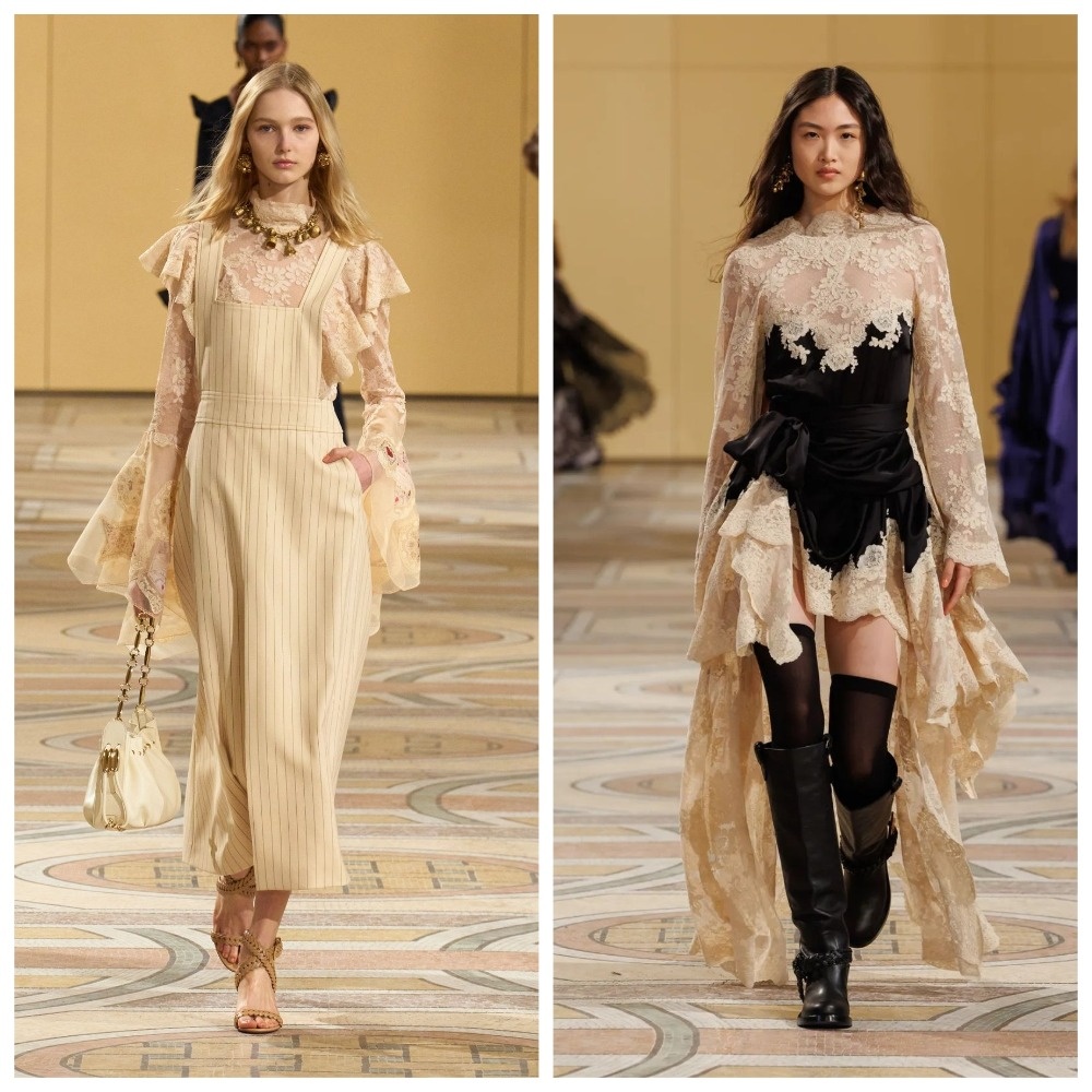 Такие бренды, как Chanel, McQueen и Dior, экспериментировали с необычными текстурами, прозрачной сеткой и проблесками кожи. Представьте себе корсеты с накидками, чёрные атласные платья с деталями, напоминающими бандаж и кружевные перчатки. Здесь важно знать, что показать, а что скрыть.