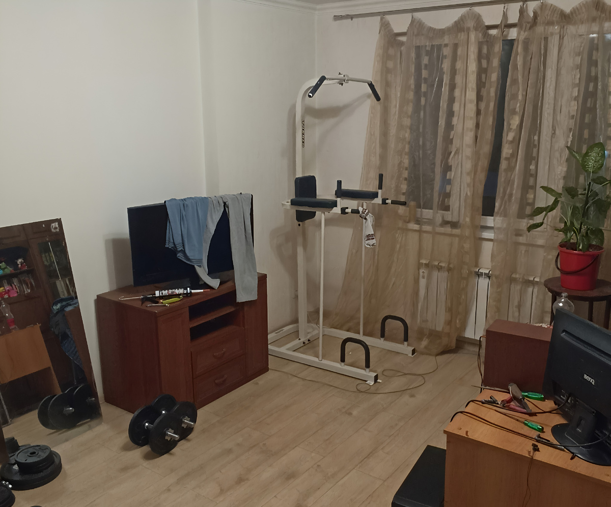 Спальня, она же кабинет, она же место для экзистенциальных кризисов, она же комната для осознания бессмысленности бытия. Это место, где я каждое утро просыпаюсь с мыслью: "Ну вот, опять не умер во сне. Невезуха. Диван нашёл на улице. Телевизор не работает, зато отлично собирает пыль. Иногда я включаю его, сажусь, и делаю вид, что смотрю – так чувствуешь себя менее одиноко.