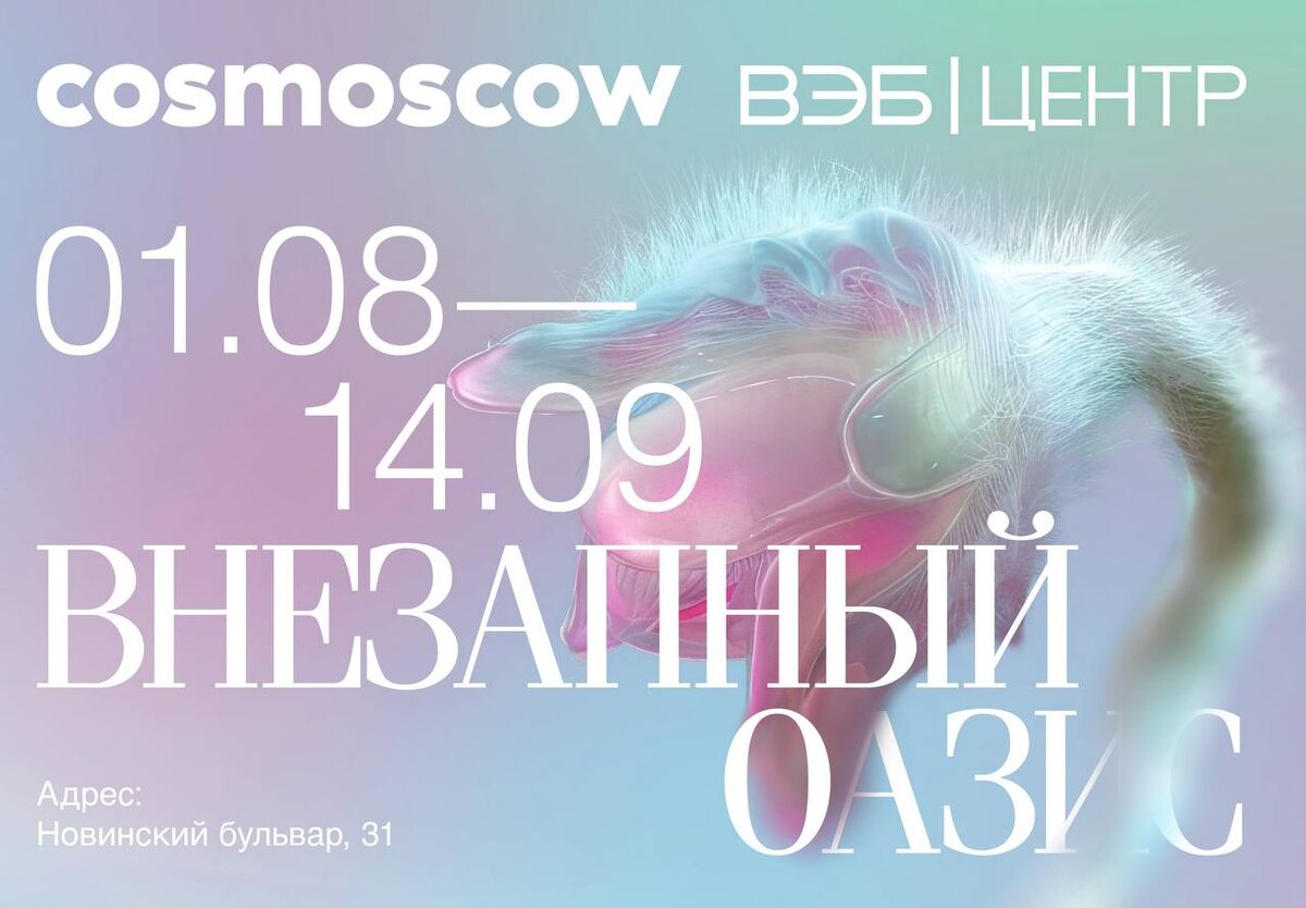1 августа в центральном атриуме ВЭБ Центра появится «Внезапный оазис» — проект, который с помощью искусства трансформирует городское пространство в освежающую гавань. Место, которого «Гвоздикам» в раскаленной Москве порой так не хватает. Работы предоставили участники ярмарки Cosmoscow, а куратором выступила Дарья Эпин. Во «Внезапном оазисе» технологии и природа вступают в диалог — зрителей встретят образы из другого измерения, где на место бетонных джунглей уже пришли цифровые. Проект завершится в день закрытия 13-го выпуска ярмарки Cosmoscow, а до этого — заглядывайте на Новинский бульвар, 31 с 10:00 до 22:00.