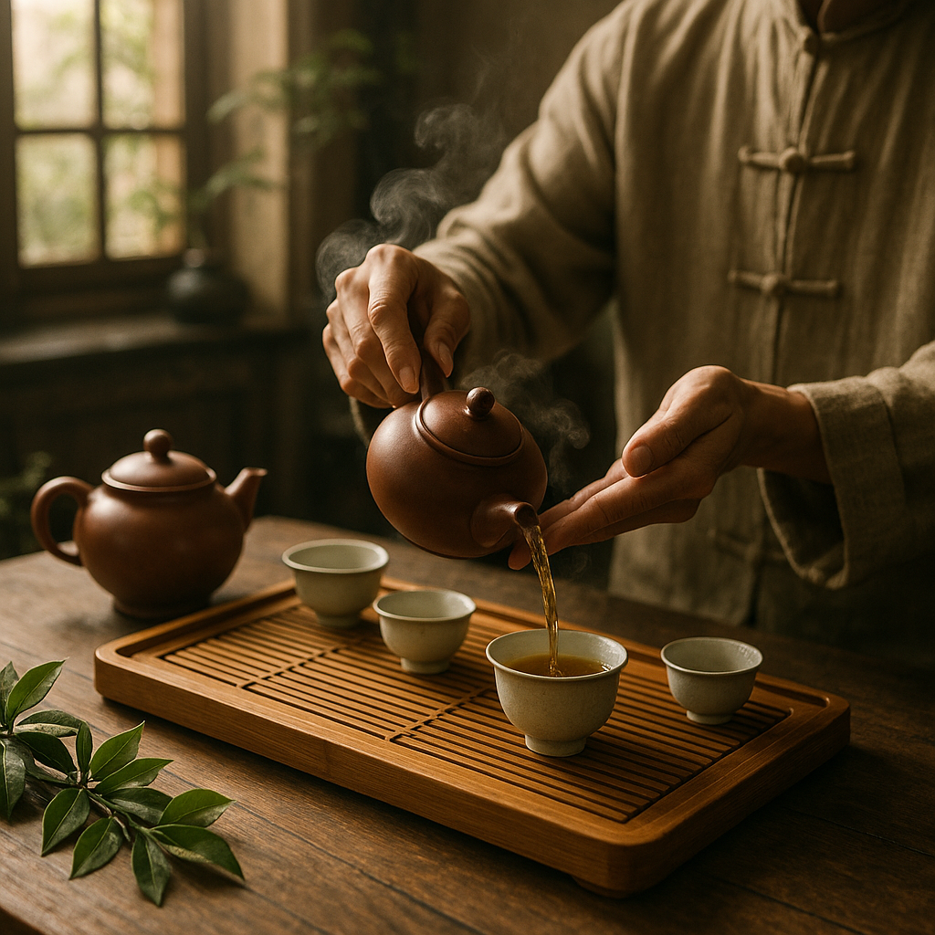 Гунфу (功夫) — это мастерство, навык, усилие. Ча (茶) — чай. То есть гунфу ча — это чай, приготовленный с мастерством. И хотя внешне это напоминает церемонию, по сути — это просто внимательное, качественное заваривание чая. Эта традиция зародилась в южном Китае (Фуцзянь, Гуандун) и особенно распространилась среди ценителей улунов и пуэров, потому что именно такие чаи лучше всего раскрываются через серию коротких проливов. Китайцы не заливают чай кипятком на 5 минут. Они проливают его многократно, короткими заварками (от 5 до 30 секунд). Это позволяет: Это не просто красивые вещи. Посуда помогает лучше контролировать процесс и эстетически «выносит» за пределы обыденности. Гунфу ча — это не пафос и не спектакль. Это способ прикоснуться к чаю глубже. Если вы хотите, чтобы чай стал чем-то большим, чем просто напиток — попробуйте попрактиковать гунфу ча хотя бы пару раз в неделю. Начните с одной гайвани и хорошего улуна. Остальное — придёт само....