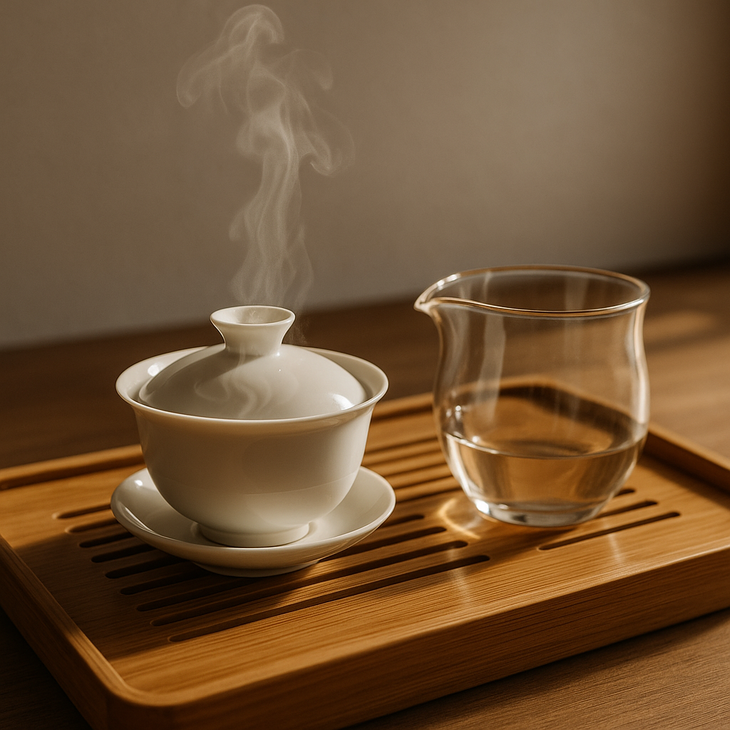 Многие, увидев китайское чаепитие впервые, удивляются: «Зачем так сложно? Разве нельзя просто заварить в кружке?» Можно. Но с чайной посудой — это не просто заваривание, а процесс. Он не только раскрывает вкус, но и помогает переключиться, почувствовать ритм, заземлиться. Давайте разберём, зачем китайцам всё это. Гайвань — это чашка с крышкой и блюдцем. Плюсы: Как пользоваться: насыпаете чай, заливаете водой, накрываете крышкой, слегка отодвигаете её — и аккуратно проливаете в сливник. Первые разы не всегда удобны, но через пару дней — привыкаешь. Чахай нужен, чтобы выровнять настой. Когда проливаешь чай из гайвани напрямую в пиалы, один гость может получить более крепкий чай, другой — слабее. Слив всё в чахай, вы уравниваете вкус. Это проявление уважения к чаю и к гостям. Китайцы пьют чай из маленьких чашек. Почему? Это не изыск, а философия: чай не для количества, а для состояния. Чай — это вода. И её нужно куда-то сливать. Чабань позволяет не переживать о разлитом — лишняя вода уход