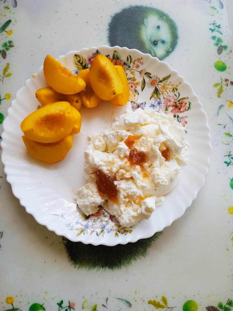 В парке погуляла часика полтора, а когда пришла домой, то пообедала творогом и нектаринами.