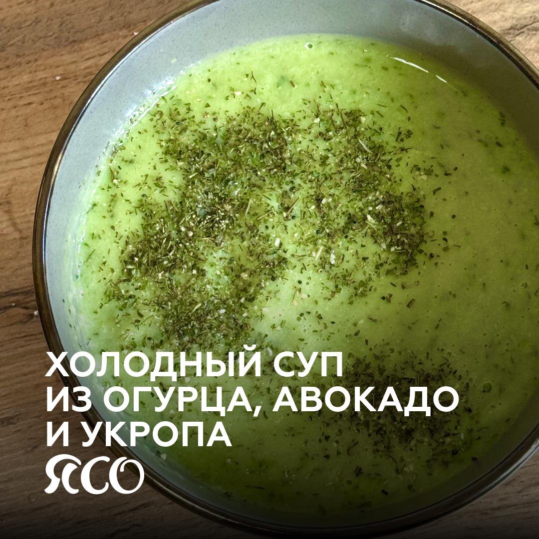 Холодный суп из огурца, авокадо и укропа Продукты (на 2 порции): Крупный огурец – 1 шт. Спелый авокадо – 1 шт. Укроп – 1–2 веточки Лимонный сок – 1 ч.л. Холодная вода/растительный йогурт – 100 мл Соль, перец – по вкусу 1️⃣Нарежьте всё крупно и отправьте в блендер. Измельчите до однородности 2️⃣Добавьте воду или йогурт, лимонный сок, соль/перец. 3️⃣Взбейте до кремовой текстуры. 4️⃣Подавайте охлаждённым, можно с оливковым маслом и семечками. Приятного аппетита! #обед #до30минут