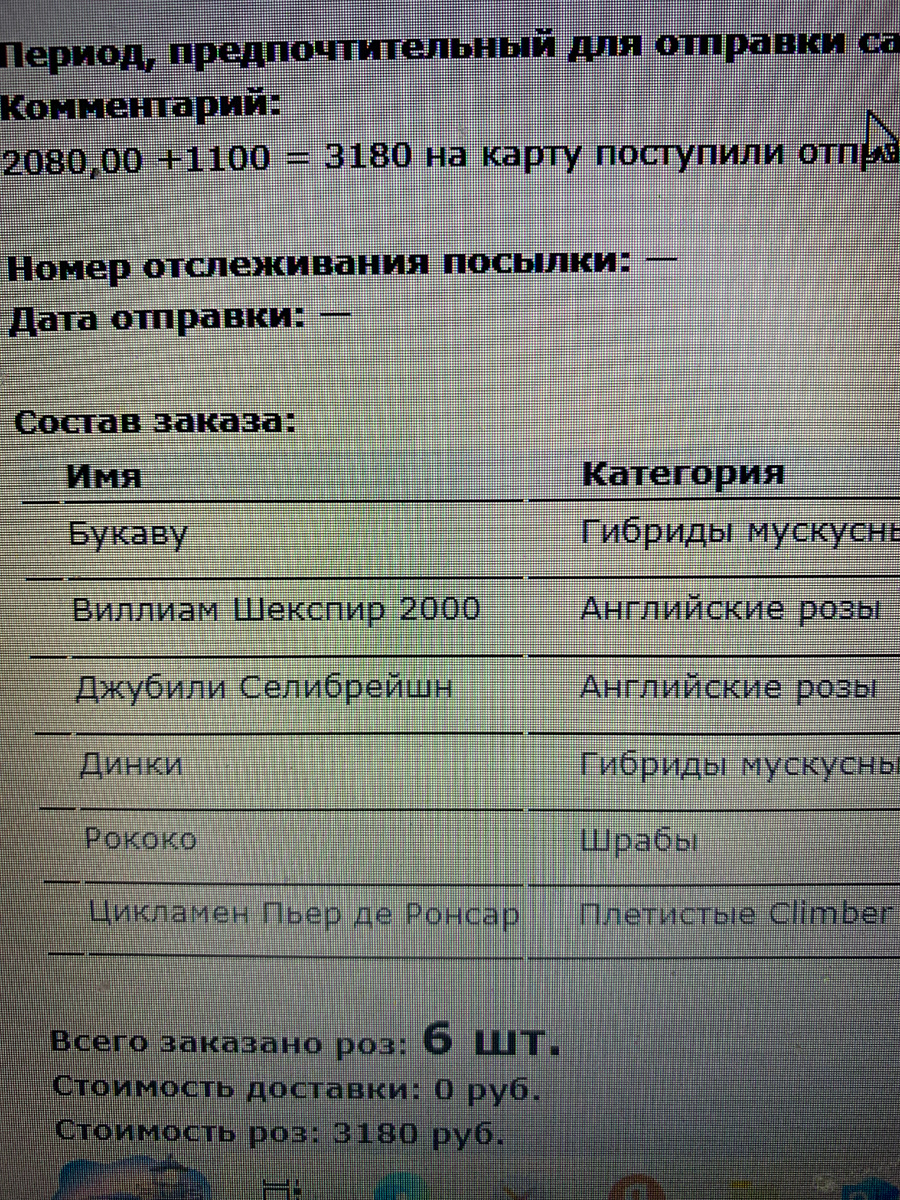 Всё в порядке, заказ сделан, роза будет. Питомник начинает отправлять саженцы с 3 сентября и 25 октября.