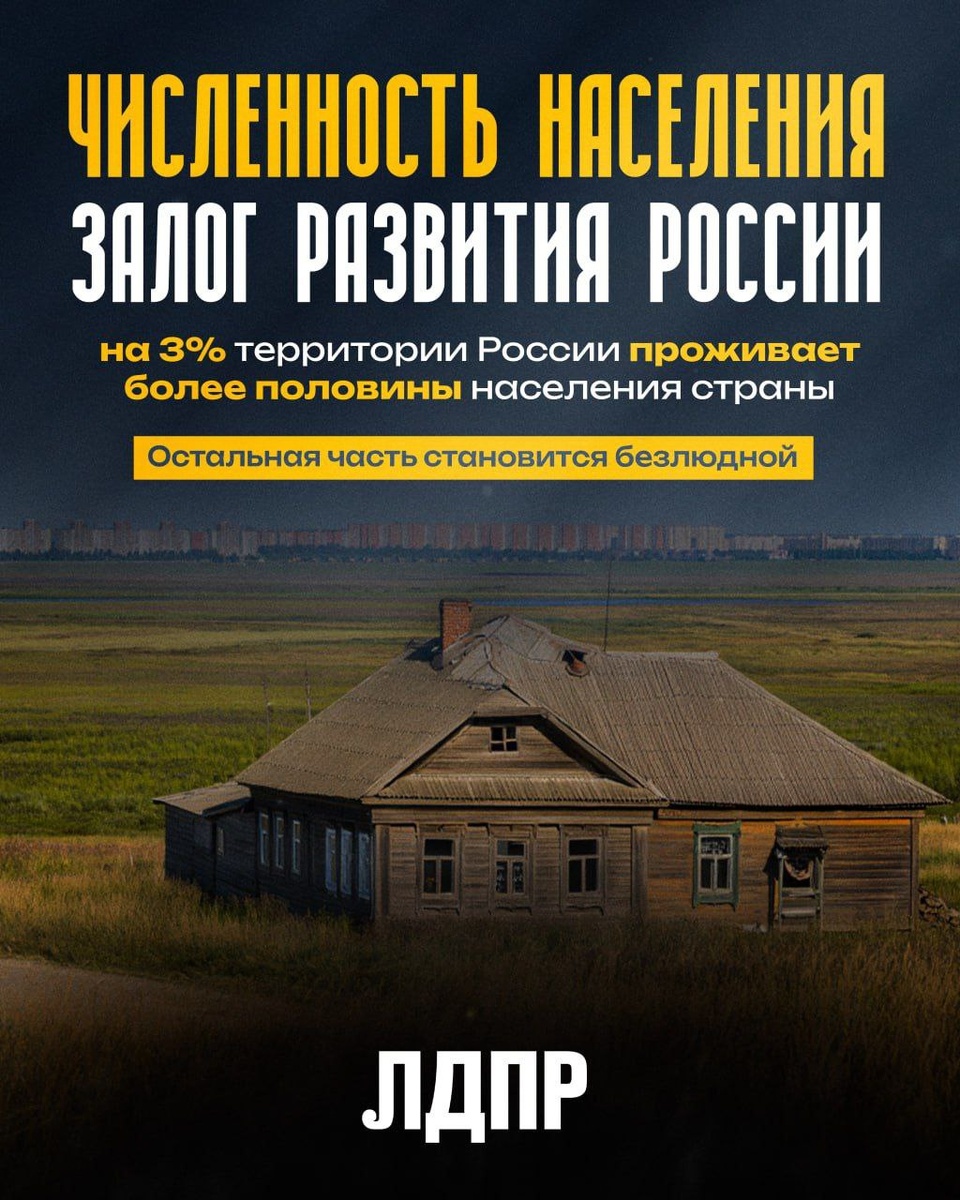 Владимир Сысоев: Демография — основа будущего России! ⚡️ ЛДПР активно продвигает инициативы по поддержке семей в России и понимает, что для рождения детей нужны условия. Но, как заметил Леонид Слуцкий, процент по ипотеке — лучшая пропаганда чайлдфри. «Министерство экономики продолжает делать ставку на крупные городские агломерации, считая их локомотивами роста. Но это «голый экономизм» — без учёта демографии! Геополитические противники уже ведут борьбу за наши земли. Но кто будет защищать Россию, если народ вымирает и разъезжается?» — заметил депутат Госдумы от ЛДПР Владимир Сысоев. ❓Почему современная экономика убивает семью? И как ЛДПР предлагает защитить Россию от вымирания? Читайте в карточках. Дорогие подписчики, благодарим Вас за поддержку! Ваши реакции, приглашения друзей и репосты позволяют нам развиваться. Не забывайте ставить 👍👍👍