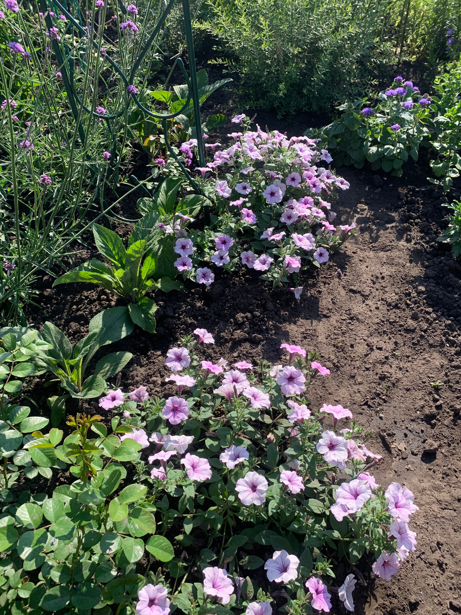 🌹Этот цветник — мой первый опыт, я посадила то, что было под рукой. В следующем сезоне вместо петуний нужно будет что-то сажать.
