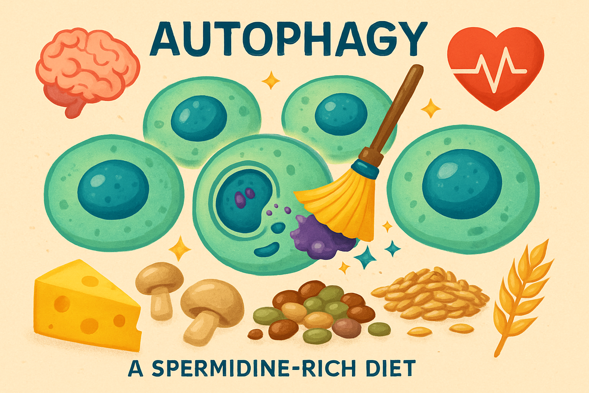 Спермидин — это натуральное вещество из класса полиаминов, которое присутствует во всех клетках живых организмов. Он принимает участие в важных клеточных процессах: росте, делении, дифференцировке и апоптозе. Ключевая функция спермидина — стимуляция аутофагии, своего рода «уборки» внутри клетки, когда повреждённые органеллы и белки своевременно удаляются. Это помогает поддерживать клеточное здоровье, защищает организм от старения и многих болезней. Полиамины, к которым относится спермидин, нужны для поддержания структурной целостности ДНК, синтеза белков и регуляции клеточного цикла. Их дефицит может приводить к нарушению клеточных функций и ускоренному старению. Аутофагия — важнейший процесс клетки, при котором она «расчищает» свое внутреннее пространство от мусора и дефектных компонентов. Это поддерживает здоровье клеток и способствует замедлению старения. Спермидин оказался одним из немногих природных веществ, эффективно активирующих аутофагию, что делает его интересным для биомеди