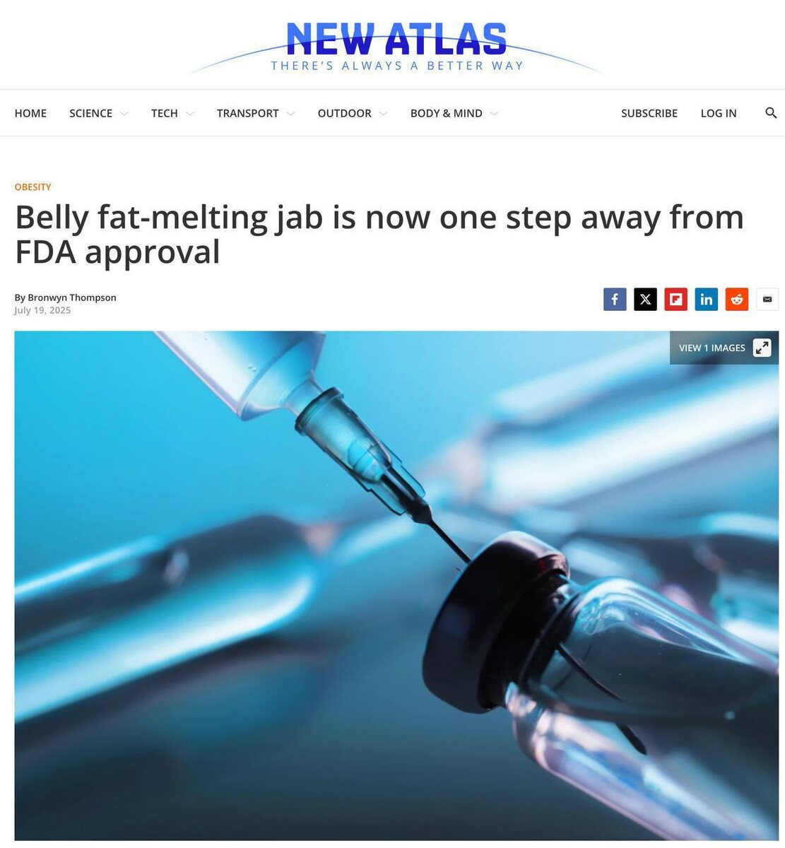 Первая в мире вакцина от ожирения: укол для локального сжигания жира близок к одобрению FDA
