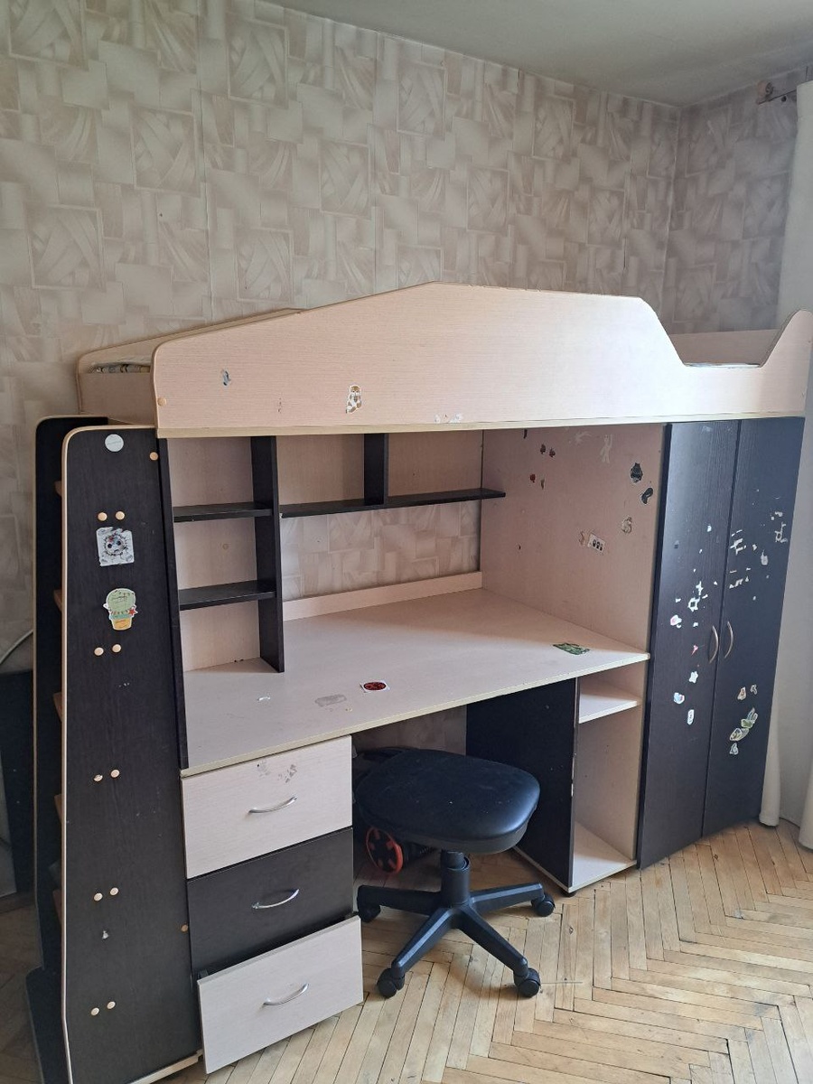 Отдам даром детскую кровать-чердак с рабочим столом, встроенным шкафом и дополнительными системами хранения