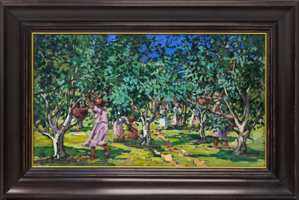 Русская антикварная галерея Сайт: rus-gal.ru #Гранди В. И. - #Картина «Сбор урожая» #СССР, 1940-е годы. Масло, холст. 32,5 Х 55,5 см #Реализм, #Жанровые_картины Подробнее: https://rus-gal.ru/works/sbor-urozhaya-7122/