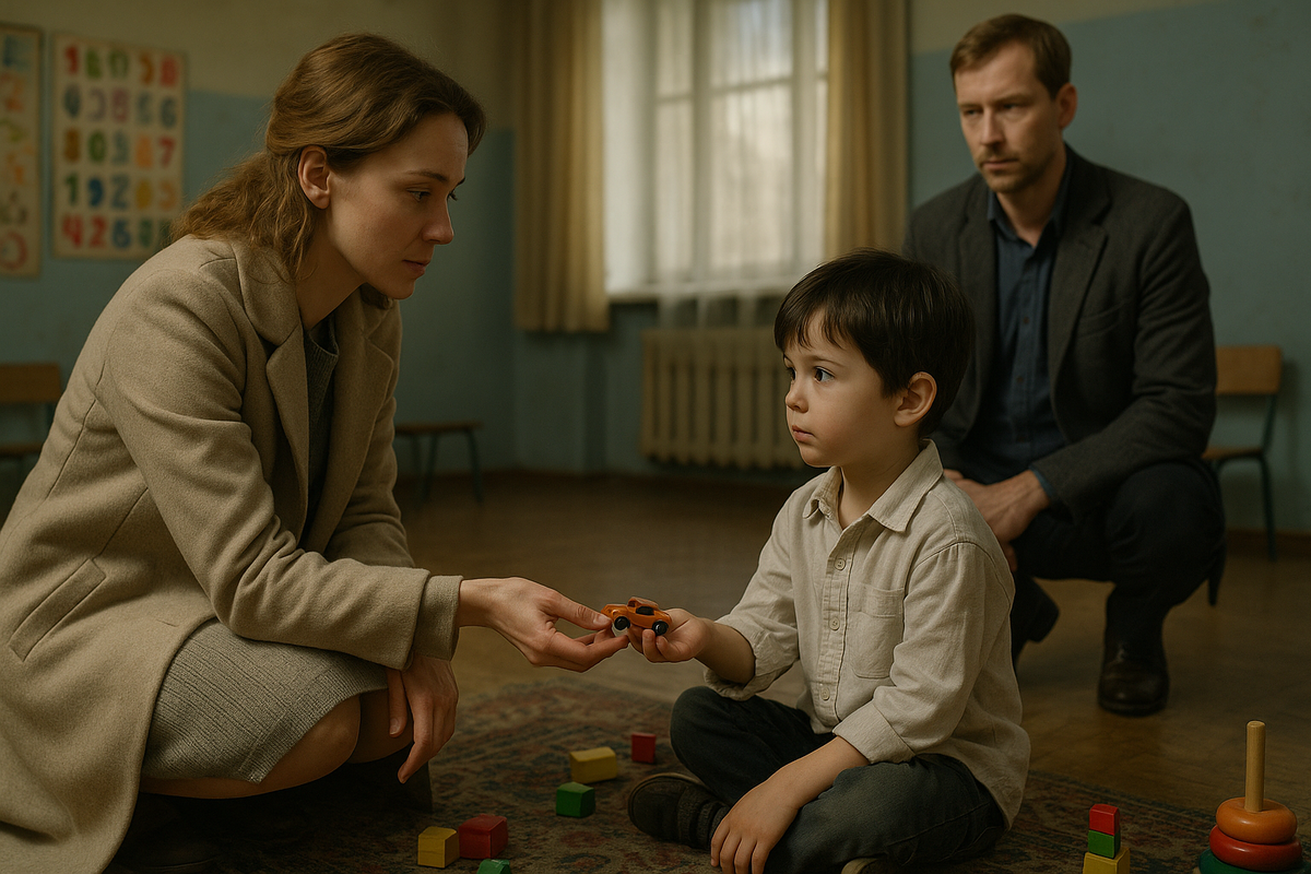 Здание оказалось обычным — не новое, но ухоженное. Их встретила воспитательница Елена Викторовна, женщина лет пятидесяти с добрыми, но уставшими глазами.