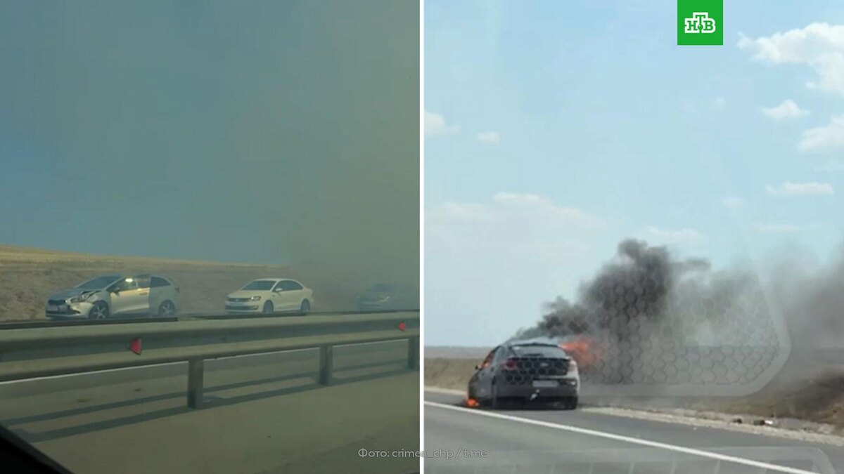 Под Симферополем больше десяти машин столкнулись из-за дыма и огня