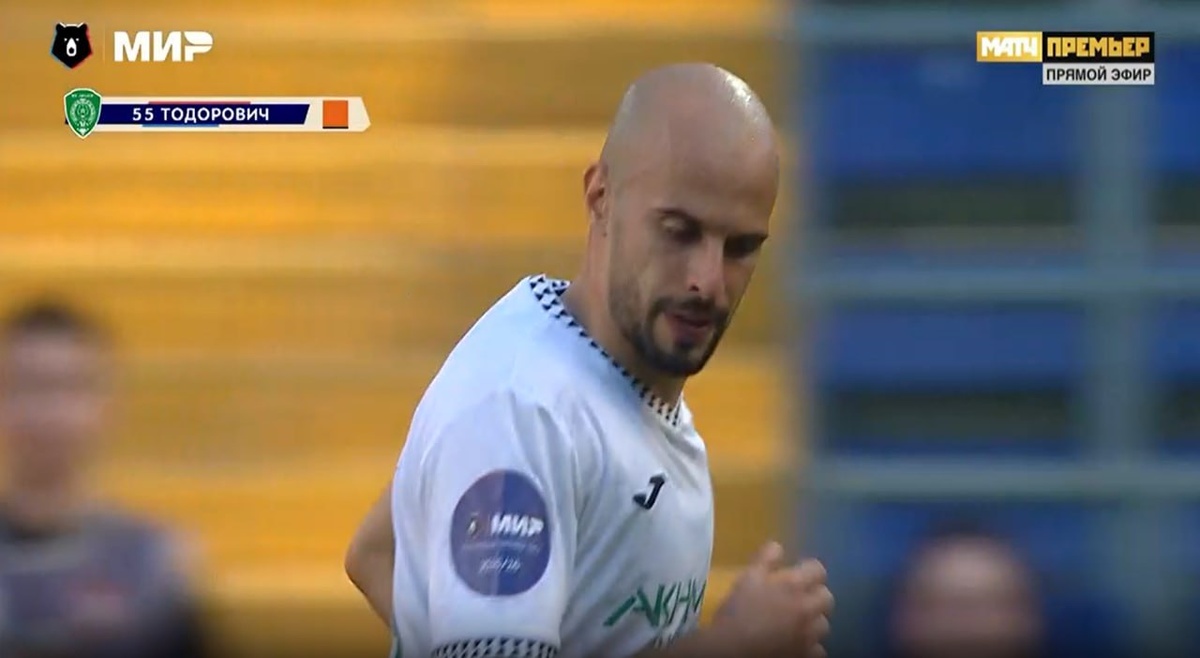 Правильное решение принимает Иванов и показывает 2-ю ж.к игроку №55 команды Ахмат за Срыв перспективной атаки