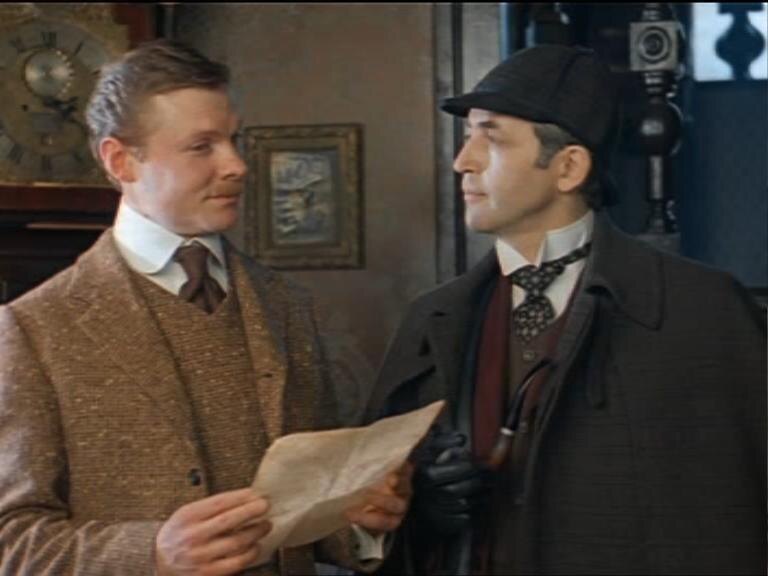 Некоторые до сих пор считают, что образ Джона Ватсона Артур во многом создавал с самого себя. Однако в мемуарах писатель утверждал, что прототипом доктора был майор Альфред Вуд, который многие годы работал у Дойла секретарем. Трагедия едва не случилась во время съемок пожара, который по сценарию разгорелся в квартире на Бейкер-стрит по вине помощников Мориарти. В этой сцене доктор Ватсон храбро борется с огнем. Картонные декорации возвели на пустыре за павильонами «Ленфильма». Кадр из фильма «Приключения Шерлока Холмса и доктора Ватсона» Когда пиротехники завершили подготовку, Соломин устремился в опасную зону, что испугало всех присутствующих. Никто не ожидал столь быстрого и мощного распространения пламени. К тому же, пожарные, дежурившие на съемках, задержались с подачей воды. Чудом Соломин избежал серьезных последствий и даже минимальных ожогов, лишь немного опалив волосы.