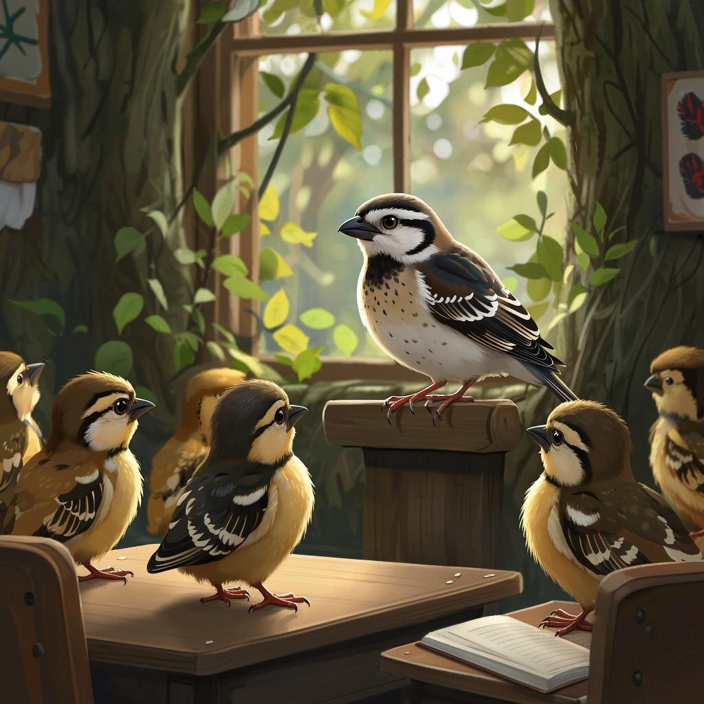 Тема: О том, как учитель открыл школу и учил птенцов. О важности учёбы.