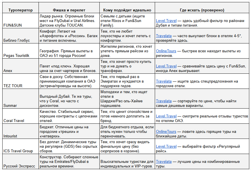 Как не переплатить, выбирая тур в Эмираты: Вместо того чтобы гадать, какой оператор надежнее, используйте тактику «умного сравнения»: