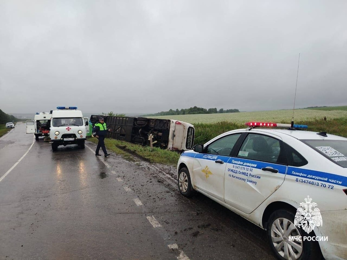 В Башкирии стало известно о состоянии пассажиров перевернувшегося автобуса