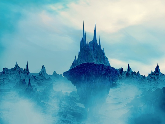 Картина представляет собой захватывающий пейзаж, в котором переплетаются элементы реальности и воображаемого мира. Сюжет изображения сосредоточен на плавно изогнутых формах, напоминающих вершины гор, которые возвышаются в небесах. Центральный элемент картины — изолированная структура, будто висящая в воздухе, окружённая драматичными обломками и тенями. Холодные синие оттенки, плавно переходящие в бледно-голубое небо, создают атмосферу отчуждения и таинственности. Картина может восприниматься как визуальный вызов, предлагающий зрителю задуматься о неизвестных мирах и невозможных пространственных формах.