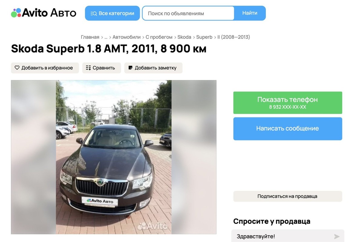 В Белгородской области на продажу выставили Skoda Superb 2011 года, сообщает «Российская газета». Автомобиль второго поколения за 14 лет проехал только 8900 км и находится в идеальном состоянии. Кузов «капсулы времени» выкрашен в тёмно-коричневый металлик. Автомобиль не эксплуатировался зимой и всё время хранился в гараже. «Суперб» представлен в комплектации Elegance, в которую входят: датчики дождя и света, климат-контроль на три зоны, круиз-контроль, ксеноновые фары, легкосплавные диски, мультимедиа, подогрев передних сидений и зеркал, омыватель фар, передний и задний парктроники, подушки безопасности (фронтальные + боковые), сиденье водителя с памятью на настройки, кожаный салон светлого цвета, электрозеркала и электростеклоподъёмники. Владелец сообщил, что дополнительно был установлен замок на коробку передач. Лифтбек оснащается турбомотором 1,8 литра мощностью 152 л.с. и 6-ступенчатой коробкой DSG. Skoda Superb 2011 года владелец оценил в 2,5 млн рублей.