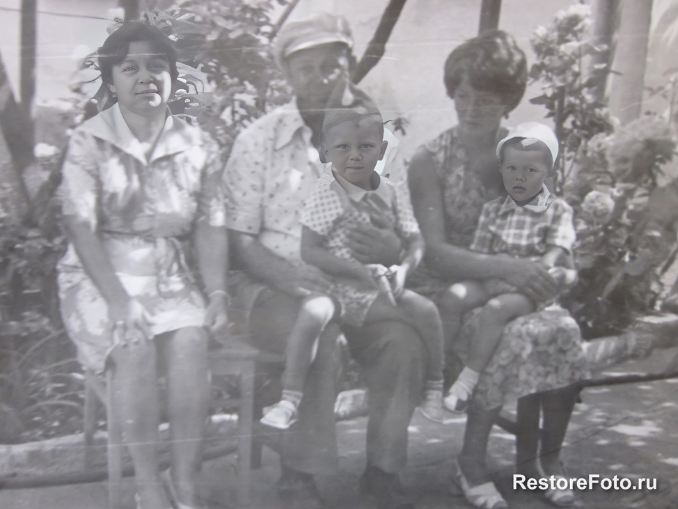 Это 1978 год. Мама, папа и племянник Алёша ездили отдыхать на море. Я болела тем летом ветрянкой, заразилась от соседского мальчика Дениски. Мне было уже 25 лет. Саша (мой муж) был в море. Наташа и Петя работали. Родители взяли с собой Алёшу. Женщина с мальчиком отдыхали и познакомились с нашими. Дети вместе играли. Маме было пятьдесят, отцу – сорок восемь лет, Алексею – два с половиной года. Других внуков у родителей в то время ещё не было. Отец носил Алёшку на плечах, держа за ноги, а тот спал, положив свою голову на голову папы. Фотографии получились нечёткие, но на память сгодятся.