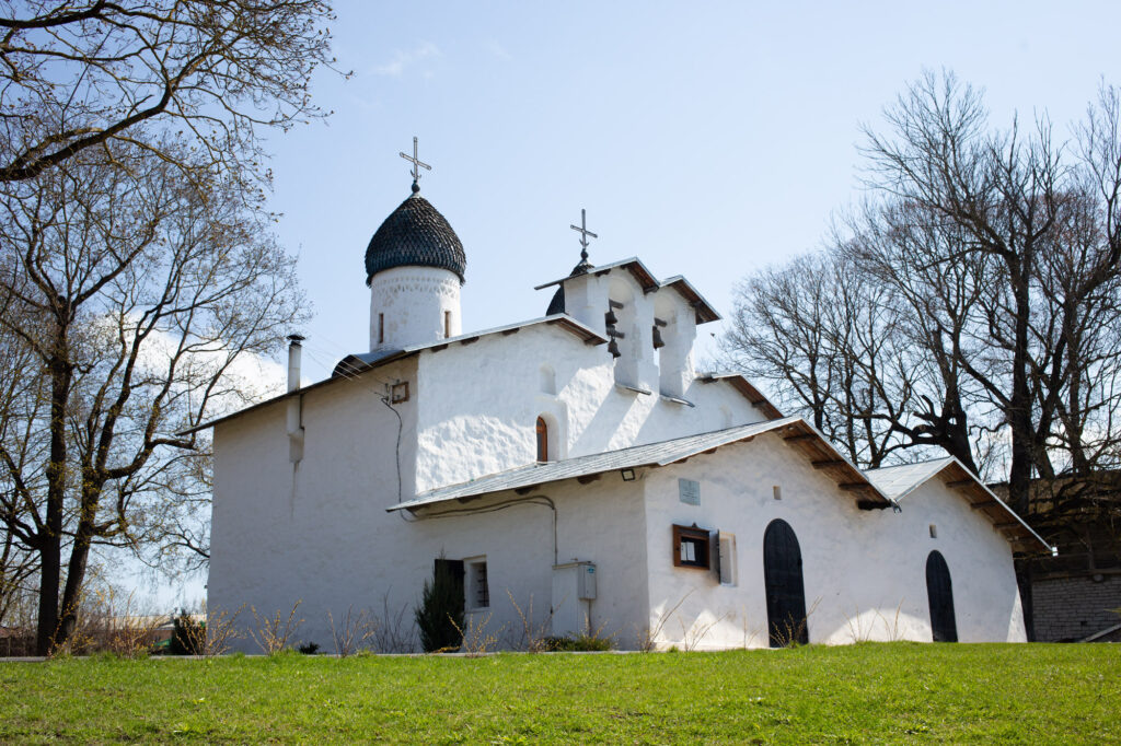 Сегодня мы с вами вместе с проектом «Псковские древности» отправимся в сам Псков, где в южном углу Окольного города у Покровской башни расположился уникальный, но пока что малоизученный «двойной» храм, возникший в XIV-XVI веках: церковь Покрова и Рождества «от Пролома». О единственном похожем памятнике – храме Филиппа Апостола и Николая Чудотворца на Нутной улицев Великом Новгороде – мы уже написали в проекте «Новгородские древности». Сейчас же наш путь лежит во Псков. Но – обо всем по порядку. Итак, храм Покрова и Рождества от Пролома. Первое упоминание Покровской церкви во Пскове в источниках встречается под 1399 годом. Покровская церковь, скорее всего, уже тогда была монастырским храмом, еще до того как местность, известная как Полонище, была обнесена деревянной оборонительной стеной и вошла в состав Окольного города. Но тогда Покровский храм был один, и, по-видимому, каменным. Фото Алексея Паевского. Апрель 2021 года Стену Окольного возводили в 1465-1466 годах, и оба упоминания о с