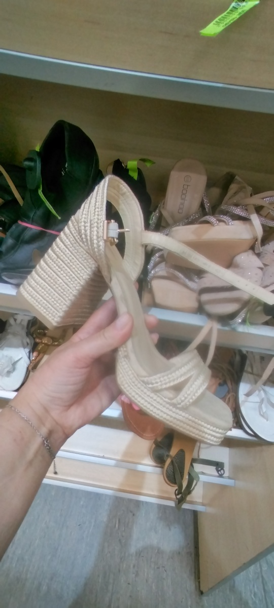 Намедни, в субботу, заскочила в "Вову' на новый привоз. Так как времени было ограниченное количество, пробежалась по обуви. Ну люблю я это дело. Кто следит за моими обзорами, знает, что практически каждое посещение секонда я начинаю именно с обуви. Почему? Не знаю сама. Но меня она интересует больше, чем всё остальное. Иногда бывает, когда осенний ассортимент, я начинаю осмотр с кожаных изделий. Но сейчас пока нет, всего меня интересующего, я покажу Вам обувь. Кое-что даже прикупила. И так, поехали! 1. Босоножки плетенки, 1200₽ 2. Атласные балетки. 1200₽. Уставшие немного. 3. Спортивные тапатули с замшевым мыском и пяткой. 1200₽. 4. Кожаные балетки металлическим украшением. 1200₽. 5. Жизнерадостные мюли на шпильке. 1200₽ 6. Остроносые туфельки. Внутри начали облазить. Хотя сверху натуральная замша. Почему делают такие некачественные внутренности? 1200₽. 7. Вот эти сабо или босоножки на танкетке понравились. Исполнение шикарнейшее. Но уже 2000₽. Если бы умела ходить на такой танкетке
