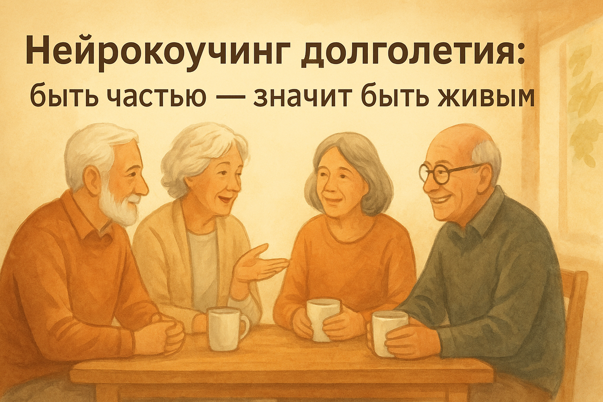 Современная нейропсихология говорит нам о том же: ощущение нужности, смысл, участие в жизни других людей продлевают жизнь не только метафорически, но и физиологически. В так называемых «голубых зонах», на японской Окинаве, греческой Икарии, коста-риканской Никойе, итальянской Сардинии и в Лома-Линде (США) люди живут удивительно долго.